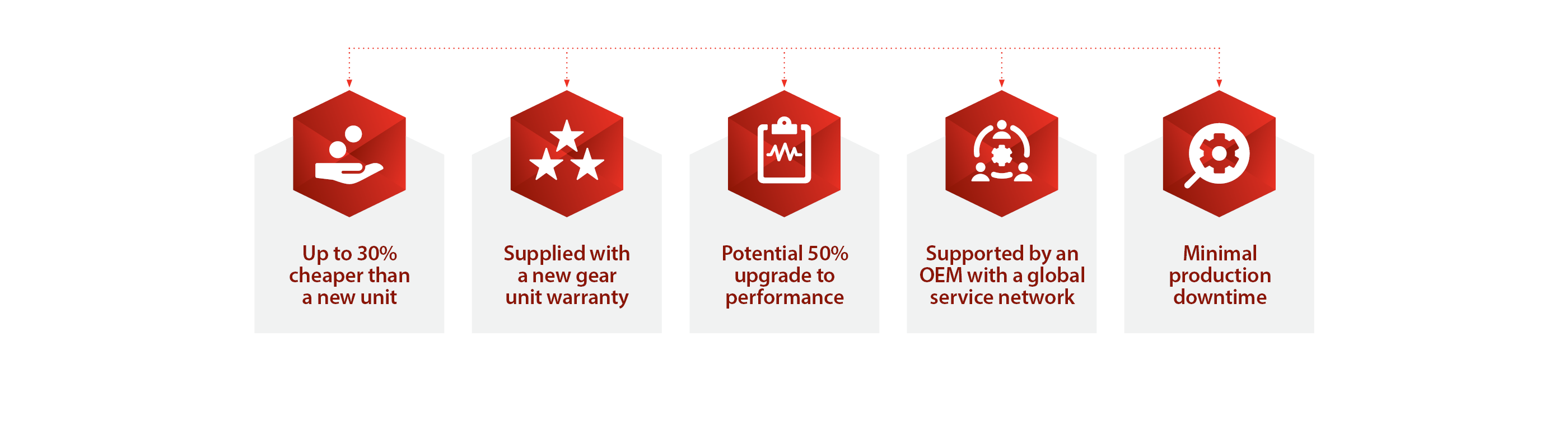 DBS Transform empowers end users to fully transition their gearbox aftermarket support to DBS, who offer proactive support throughout the entire lifecycle of the asset. Additionally, DBS Transform is more cost-effective than purchasing a new spare unit, offering quicker turnaround times, lower installation risks, and a new gearbox warranty!